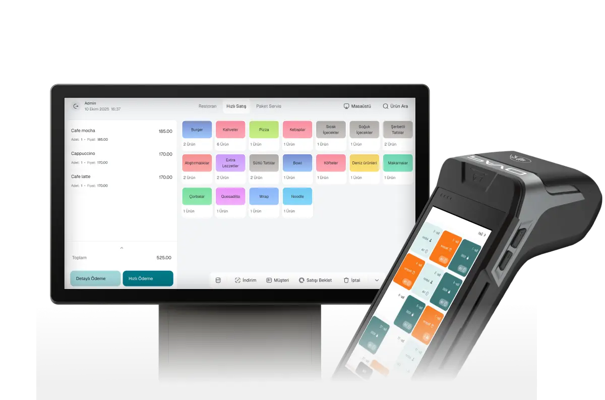 Tablet , Telefon veya Dokunmatik Pos Pc ile çözüm üretebilir, mobile cihaz kullanımı ile işletmenize prestij ve hız katabilirsiniz.
