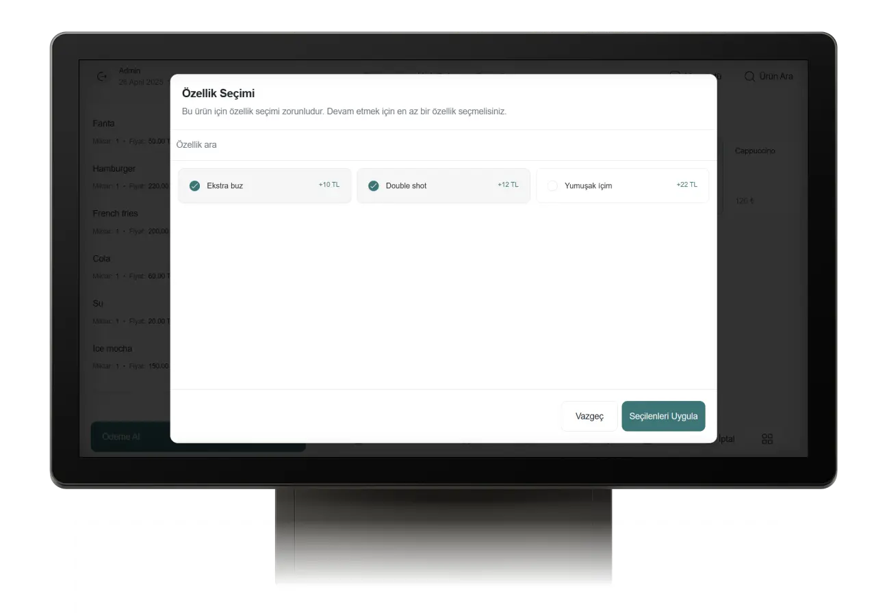 Daha önceden tanımlanmış ürün ilavelerini kullanabilir veya sipariş anında mesaj girebilirsiniz.