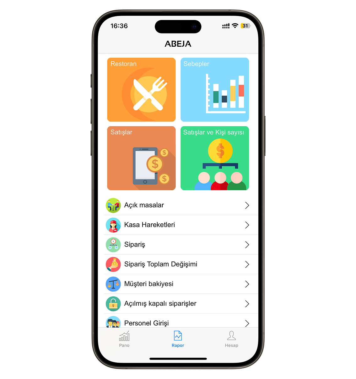 Anlık olarak mobil cihazlarınızdan işletmenizi takip edebilirsiniz.