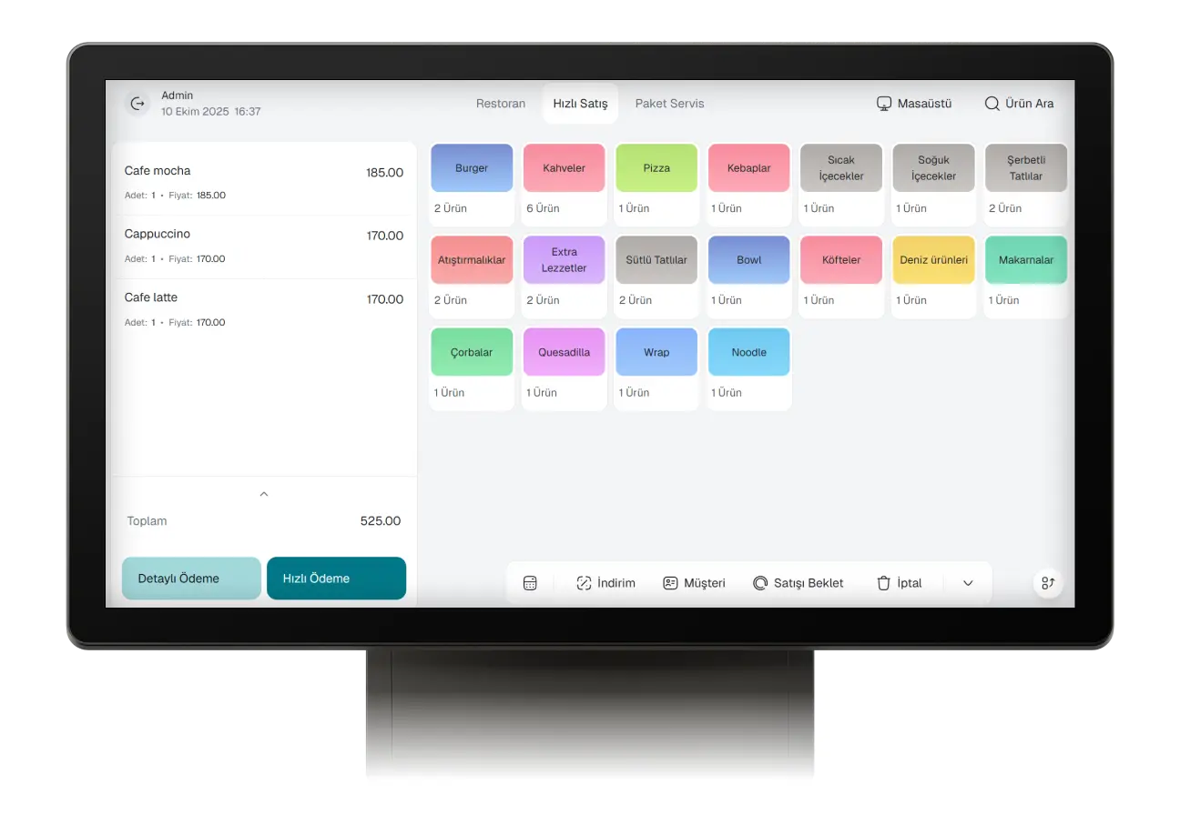 Dokunmatik kullanıma ilave olarak barkod ile satış yapabilirsiniz