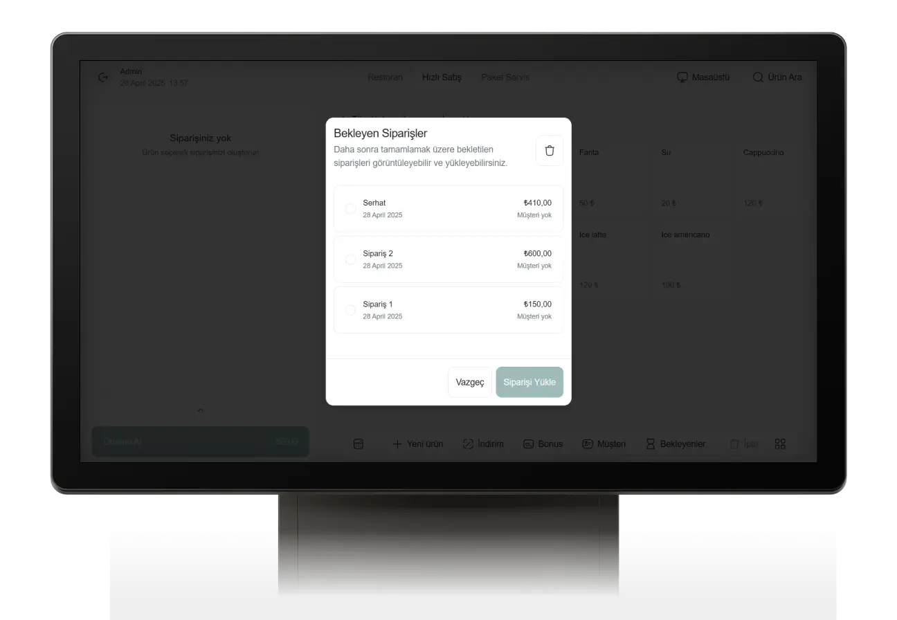 Bir satışı beklemeye alabilir ve daha sonra bekleyen satışı çağırıp devam edebilirsiniz.