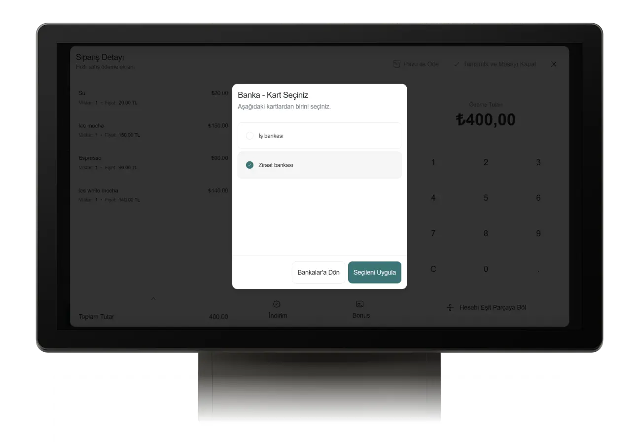 - Parçalı ödeme ve Para üstü hesaplatılması