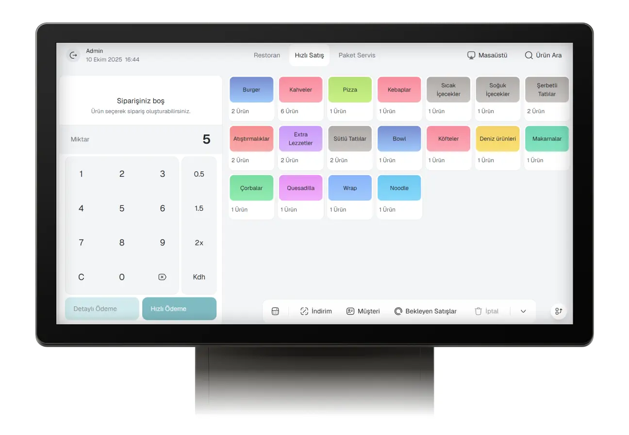 Hızlı satış ekranın da yetkisi olan kullanıcı ürünlere indirim veya ikram yapabilir.